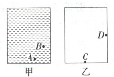 C.甲容器中$p_A>p_B$,乙容器中$p_C=p_D$