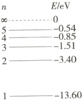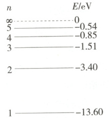 光子:原子若是吸收光子的能量而被激发,则光子的能量必须等于两能级的能量差,否则不能被吸收;不存在激发到 n = 2 能级时能量有余,而激发到 n = 3 能级时能量不足,仍可激发到 n = 2 能级的情况。