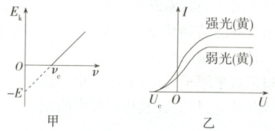 D 根据$E_k = h\nu - W_0$,$W_0 = h\nu_c$,结合图甲可知,$\nu_c$为