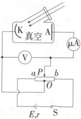 D.仅将滑动变阻器的滑片 $P$ 向左滑动,当电流表的示数恰好为 0 时,电压表的示数等于遏止电压