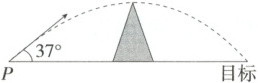 5.(2025安徽蚌埠期末) 某连队在一次迫击炮实弹训练中要求炮手将炮弹发射到小山包另一侧地面上的目标处(如图所示),小山包的高度为$h$,炮手在$P$点将射击仰角调整到$37°$时发射,炮弹恰好在最高点越过山头命中目标,不计空气阻力,重力加速度为$g$,$\sin 37° = 0.6$,$\cos 37° = 0.8$,炮弹的出射速度大小恒定,则下列说法正确的是 (