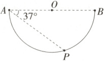 3.(2025吉林长春外国语学校月考) 如图所示为竖直截面为半圆形的容器,$O$为圆心,$AB$为沿水平方向的直径,一物体在$A$点以向右的初速度$v_A$水平抛出,同时另一物体在$B$点以向左的初速度$v_B$水平抛出,两物体都落到容器的同一点$P$。已知$\angle BAP = 37°$,$\sin 37° = 0.6$,$\cos 37° = 0.8$,不计空气阻力。下列说法正确的是(