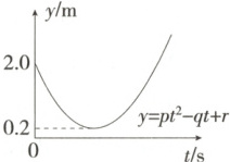 6.(2025湖北武汉调研) 某同学将小球沿与水平方向成$37°$角斜向上抛出,同时拍摄其运动过程并通过软件分析,以抛出时刻为计时起点,作出小球在竖直方向上的位置坐标随时间变化的图像,拟合的函数为$y=pt^2 - qt + r$。已知重力加速度大小$g = 10\ m/s^2$,不计空气阻力,$\sin 37° = 0.6$,$\cos 37° = 0.8$,则 (