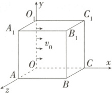 8.(2024江苏泰州联盟校调研) 如图所示,在足够大的空间直角坐标系$O-xyz$内的正方体$OABC-O_1A_1B_1C_1$区域,棱长为$L$,粒子源在$y$轴(竖直方向)上$OO_1$区域内沿$x$轴正方向连续均匀地射出粒子,已知粒子的质量为$m$,初速度为$v_0$,重力加速度为$g$。