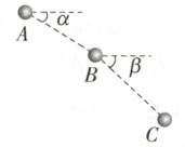 3.(2025 江西宜春期末)水平抛出一小球,用频闪仪对运动的小球进行拍摄,频闪仪每隔$T = 0.05 s$发出一次闪光,某次拍摄后截取部分照片如图所示。图中相邻两球之间被删去了 3 个影像,标出的两线段$AB$、$BC$与水平方向的夹角分别为$\alpha = 37°$、$\beta = 45°$,取$\sin 37° = 0.6$,$\cos 37° = 0.8$,重力加速度$g = 10 m/s^2$,忽略空气阻力,则下列说法中正确的是 (