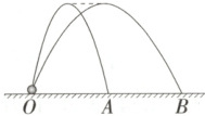 1.(2025 浙江杭州学军中学期末)如图所示,小球分别以与水平地面夹角为$\theta_A$、$\theta_B$的初速度$v_A$、$v_B$从水平地面上的$O$点斜向上抛出,经时间$t_A$、$t_B$分别落在$A$、$B$点,且$OB = 2OA$,两次在空中的最大高度相同。不计空气阻力。下列说法正确的是 (