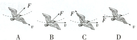 8.(2024 江苏南京六校联合体调研) 下面四个选项中的虚线均表示小鸟在竖直平面内沿曲线从左向右加速飞行的轨迹, 小鸟在轨迹最低点时的速度$v$和空气对它的作用力$F$的方向可能正确的是 (