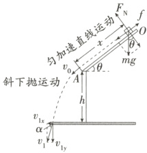 竖直方向做竖直下抛运动,有$v_{1y}^{2}-v_{y}^{2}=2gh$