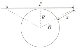 根据几何关系有$(\frac{l'}{2})^{2}+R^{2}=(x+R)^{2}$