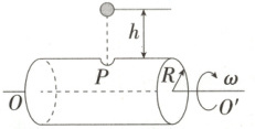 6.(2024 江苏盐城中学月考) 如图所示,水平放置的圆柱形筒绕其中心轴$OO'$匀速转动,筒的半径$R = 2 m$,筒壁上有一小孔$P$,一小球从$P$的正上方$h = 3.2 m$处由静止释放,此时小孔开口向上转到小球正下方。已知孔的半径略大于小球半径,筒壁厚度可以忽略,不计空气阻力,重力加速度$g$取$10 m/s^2$。若小球恰好能够从小孔离开圆筒,则筒转动的周期可能为(