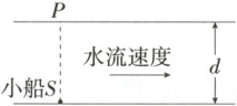 3.(2025北京第五十七中学期中)如图所示,小船$S$要过河,$P$处为小船的正对岸位置,河宽$d=30 m$,水流速度$v_1=3 m/s$,小船在静水中划行的速度$v_2=5 m/s$。下列说法中正确的是 (