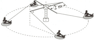1.(2025 江苏连云港月考)进入冬季后,北方的冰雪运动吸引了许多南方游客。如图所示为雪地转转游戏示意图,人乘坐雪圈(人和雪圈总质量为 50 kg,大小忽略不计)绕轴以 2 rad/s 的角速度在水平雪地上匀速转动,已知水平杆长为 2 m,离地高为 2 m,绳长为 4 m,且绳与水平杆垂直。则雪圈(含人) (