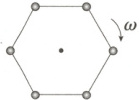 4.(2025 湖南师大附中月考)用劲度系数为 k、原长均为 $l_0$ 的符合胡克定律的六根橡皮筋,将六个质量均为 m 的小球连接成正六边形(如图所示),放在光滑水平桌面上。现在使这个系统绕垂直于桌面、通过正六边形中心的轴匀速转动。在系统稳定后,观察到正六边形边长变为 $3l_0$,则此时转动的周期为 (