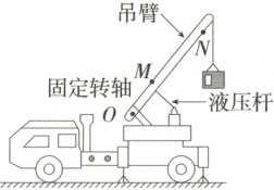 4.(2025 广东佛山一中、中山一中等四校联考)如图所示是建筑工地上起吊重物的吊车,某次操作过程中,液压杆收缩,吊臂绕固定转轴$O$顺时针转动,吊臂边缘的$M$、$N$两点做圆周运动,$O$、$M$、$N$三点不共线,此时$M$点的角速度为$\omega$。已知$MN = 2OM = 2L$,则 (