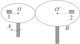 5.(2025 浙江舟山中学期中)如图所示,水平圆盘$A$和$B$通过摩擦传动匀速转动,它们不发生相对滑动,物块$1$和$2$分别相对静止在圆盘$A$和$B$上,圆盘$B$的半径是圆盘$A$的$1.5$倍,物块$2$做圆周运动半径是物块$1$的$2$倍,则物块$1$、物块$2$的向心加速度之比为 (