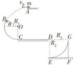 (2)对物块在$B$点时受力分析,根据牛顿第二定律有$mg\sin30° + F_N = m\frac{v_B^2}{R_1}$
