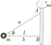 2.(2025 浙江省强基联盟期中) 如图所示, 质量为 $m=0.3 \mathrm{~kg}$ 的小球由不可伸长的轻绳 $a$ 和 $b$ 分别系于竖直转轴的 $A$ 点和 $B$ 点, 竖直转轴以角速度 $\omega$ 匀速转动, 轻绳 $b$ 张紧并保持水平, 绳 $a$ 与 $b$ 的夹角 $\theta=37^{\circ}$, 绳 $b$ 的长度 $l=0.5 \mathrm{~m}$。小球在水平面内做匀速圆周运动, 阻力、小球大小和转轴直径均忽略不计, 已知重力加速度 $g=10 \mathrm{~m} / \mathrm{s}^{2}, \sin 37^{\circ}=0.6, \cos 37^{\circ}=0.8$, 下列说法正确的是 (