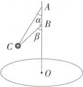 (3)假设小球脱离前,轻杆和细绳对小球都有力的作用,小球脱离后做平抛运动,且恰好碰到圆盘,竖直方向有$OB - \frac{AC \sin \alpha}{\tan \beta} = \frac{1}{2}gt^2$