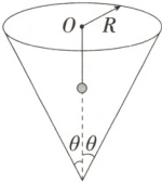 2.如图所示 , 内壁光滑的圆锥筒的轴线竖直 , 截面顶角为 $2\theta = 60°$, 底面半径为 $R$, 在底面圆心 $O$ 处系一轻质细线 , 长也为 $R$, 细线的另一端连一小球 , 小球可视为质点 , 现给小球一个初速度 , 使其在水平面内做圆周运动。已知重力加速度为 $g$, 则: