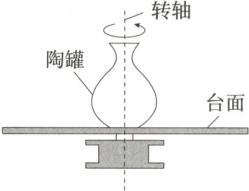 ①关键点拨$^{①}$陶屑相对台面静止,即随转台做匀速圆周运动。