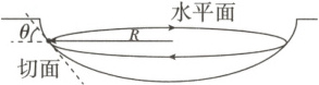 5 多选题(2025 广东,8) 将可视为质点的小球沿光滑冰坑内壁推出,使小球在水平面内做匀速圆周运动, 如图所示。已知圆周运动半径$R$为$0.4\ m$, 小球所在位置处的切面与水平面夹角$\theta$为$45°①$,小球质量为$0.1\ kg$,重力加速度$g$取$10\ m/s^2$。关于该小球,下列说法正确的是 (