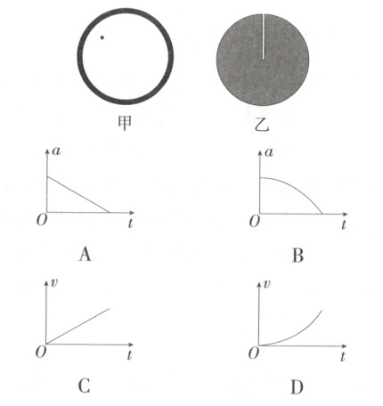 5.(2025 安徽皖南八校联考)如图甲所示,质量分布均匀的球壳,对其内部任意一点的万有引力为零。将地球视为质量分布均匀的球体,从地表往地心挖一条很窄的矿井,从井口静止释放一物块。忽略一切摩擦和地球的自转,从地表到地心,物块的$a-t$图像、$v-t$图像大致正确的是 (