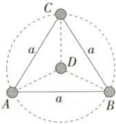 7.(2025 山东济南模拟)太空中存在离其他恒星系统很远、由四颗星体组成的四星系统,其他星体对它们的引力作用可忽略。稳定的四星系统有两种构成形式,其中一种是三角形,如图所示,假设三颗质量均为$m$ 的星体$A$、$B$、$C$ 分别位于等边三角形的顶点,一颗质量为$M$ 的星体$D$ 位于等边三角形的中心处,等边三角形的边长为$a$,引力常量为$G$。以星体$D$ 为参考系,下列说法正确的是 (