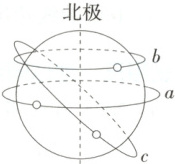 6.(2025 北京北师大附中期中)某同学利用所学知识画出了三颗人造地球卫星围绕地球做匀速圆周运动的轨道,如图所示,其中卫星$a$的轨道平面与赤道平面共面。下列说法正确的是(