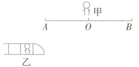 5.(2025河北石家庄NT20名校联合体演练)如图所示,甲站在水平木杆$AB$的中央$O$点附近,并且看到木杆落在地面上时是两端同时着地的;若此时乙站在向右运动的火车中,以接近光速的速度从木杆前面掠过,则 (