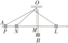 2.(2025 湖北荆州中学月考 ) 如图所示,水平光滑长杆上套有物块 $A$(可视为质点),一细线跨过固定在天花板上 $O$ 点、大小可以忽略的轻质定滑轮,一端连接 $A$,另一端悬挂物块 $B$。开始时 $A$ 位于 $P$ 点,$M$ 为 $O$ 点正下方杆上一点,现将 $A$、$B$ 由静止释放,忽略一切阻力。当 $A$ 通过杆上 $N$ 点时,细线与水平方向夹角为 $37°$,$L$ 与 $N$ 关于 $M$ 对称,已知 $\sin 37° = 0.6$,$\cos 37° = 0.8$,关于释放后的过程,下列说法正确的是 (