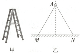 4.(2025 江西赣州期中联考 ) 如图甲所示是家用的人字梯,结构简图如图乙所示,该人字梯由两个完全相同的梯子 $AM$、$AN$ 通过顶端的铰链 (大小不计 )连接而成。某次使用完人字梯后需要将其收拢起来,让梯子的底端 $M$、$N$ 两点均以恒定的速率 $v$ 贴着地面向中间滑动,某时刻,梯子 $AM$、$AN$ 和竖直方向的夹角均为 $30°$,则此时梯子顶部铰链速度大小为 (