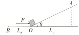 10.(2025安徽合肥八中期末)如图所示,物体在水平恒力$F$的作用下,从斜面底端$O$点沿斜面缓慢移动到$A$点,去掉$F$后,物体从$A$点下滑到水平面的$B$点停下。已知斜面的倾角为$\theta$,$O$、$A$间的水平距离为$L_1$,$O$、$B$距离为$L_2$,物体的质量为$m$,物体与水平面和斜面间的动摩擦因数都为$\mu$,重力加速度为$g$,下列判断正确的是 (
