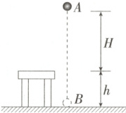 3.(2025 江苏四市十一校联考)如图所示,质量为 $m$ 的小球,从桌面上方距桌面 $H$ 高度的 $A$ 处由静止下落,桌面离地面 $B$ 处高度为 $h$。以桌面为参考平面,重力加速度为 $g$,下列说