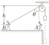 4.如图所示,某人用定滑轮提升质量为 $m$ 的重物,人拉着绳从定滑轮正下方 $h$ 的 $A$ 处缓慢走到 $B$ 处,此时绳与竖直方向成 $\theta$ 角,重力加速度为 $g$,则此过程中,重物重力势能的增加量是(