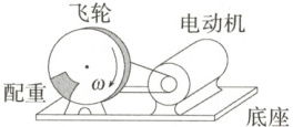 2.(2024 江西宜春期中)建筑工地经常使用偏心轮,如图所示,偏心轮主要由飞轮和配重组成,配重的质量为$m = 6 kg$(配重可视为质点),到轮轴的距离为$r = 20 cm$。若某时刻飞轮转动的角速度为$\omega = 10\sqrt{3} rad/s$,则此时配重的动能为 (