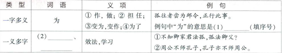 (2)“不知卿家君法孤,孤法卿父”句意:不知是你的父亲效法我,还是我效法你的父亲?“周公不师孔子,孔子亦不师周公”句意:周公没有学孔子,孔子也没有学周公。据此可知,句中的“法”与“师”都是“效法、学习”的意思。