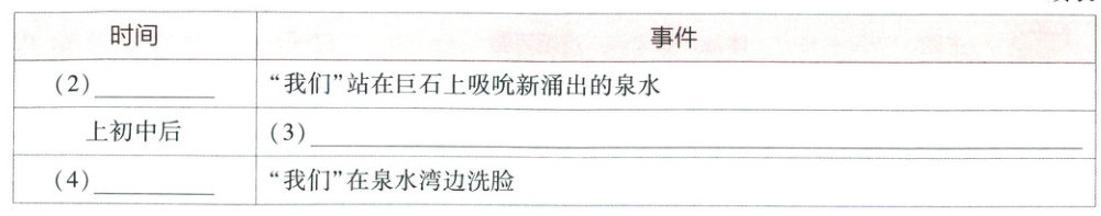 1. 本文围绕“泉水”写了不同时期的四件事,请填写下面表格。(4 分)