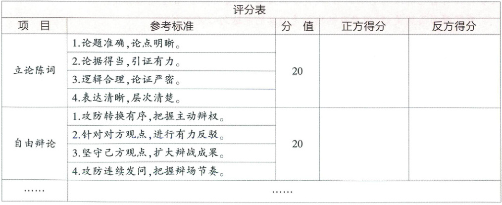4. 新考法 新素养 班级模拟辩论结束后,你将作为评委代表点评辩手表现。请联系材料一、材料二和材料四,从小语和小文中,任选一位辩手做点评。(6分)