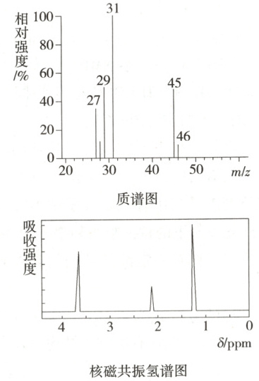 6. 某有机化合物只含$C、H、O$三种元素,取$4.6\ g$该有机化合物完全燃烧,测得只生成$0.2\ mol\ {CO_{2}}$和$5.4\ g\ {H_{2}O}$,其质谱图和核磁共振氢谱图如下所示,该有机化合物是(