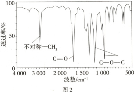 (2)①根据题图1可知,最大质荷比为88,则A的相对分子质量为88。②A的相对分子质量为88,则4.4gA的物质的量为0.05mol,高氯酸镁的质量增加3.6g,即生成水的物质的量为0.2mol,碱石棉的质量增加8.8g,即生成CO₂的物质的量为0.2mol,m(C)+m(H)=(0.2×12)g+(0.2×2)g=2.8g,小于4.4g,则说明分子中还含有O元素,根据相对分子质量为88得到分子式为C₄H₈O₂;由题图2可知,A中含有C═O键、C—O—C和不对称—CH₃,推测单官能团有机溶剂A可能所属有机化合物的类别为酯;③可能属于酯类的A中含有不对称的—CH₃,分子式为C₄H₈O₂,核磁共振氢谱图中有3组峰,且峰面积之比为3:3:2,则A的结构简式可能为CH₃CH₂COOCH₃或CH₃COOCH₂CH₃。