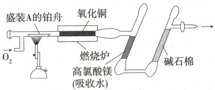 8. (2024安徽宿州泗县一中开学考)青蒿素是我国科学家从传统中药中发现能治疗疟疾的有机化合物,它可用单官能团有机溶剂A从中药中提取。借助李比希法确定有机溶剂A的实验式(最简式)。利用如图所示的装置测定有机化合物A的组成,取$4.4\ g$A与足量氧气充分燃烧,实验结束后,高氯酸镁的质量增加$3.6\ g$,碱石棉的质量增加$8.8\ g$。