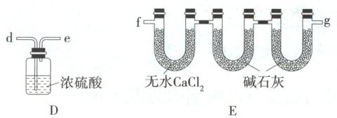 (用小写字母表示);装置E最右侧U形管所装药品的作用为防止空气中的CO₂和H₂O进入装置E中中间和左侧的两个U形管