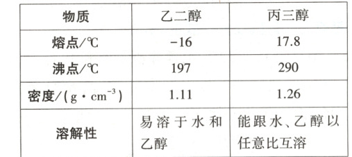 1. 现有四组分散系:①汽油和水形成的乳浊液;②含有泥沙的食盐水;③溶有碘(${I_{2}}$)的氯化钾溶液;④乙二醇和丙三醇的混合溶液(乙二醇和丙三醇的部分物理性质见下表)。