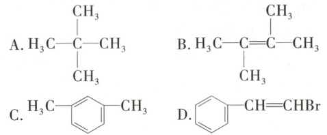 3.A A项,相当于甲烷分子中的4个氢原子被甲基取代,所有的碳原子不可能共平面,正确;B项,可视为乙烯分子中的4个氢原子被甲基取代,所有的碳原子共平面,错误;C项,可视为苯环上间位上的2个氢原子被甲基取代,所有的碳原子共平面,错误;D项,分子中含有1个苯环和1个碳碳双键,二者通过碳碳单键相连,单键可以旋转,二者所在平面可能重合,所有碳原子可能共平面,错误。