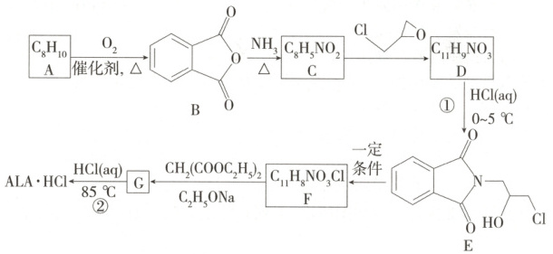 广泛用于医学和农业,合成 $\mathrm{ALA·HCl}$的一种路线如下。