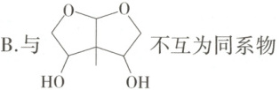 的分子中所含羟基个数不同,结构不相似,不互为同系物,B正确;既含羧基又含醛基的H的同分异构体可看作丁烷的两个氢原子分别被一个羧基和一个醛基取代,采用“定一移一”法,先固定羧基的位置,再移动醛基的位置:④②COOH、③①;③COOH、②①;④②COOH、③①;③COOH、①(序号代表醛基的位置),共12种,C正确;该分子中有3个手性碳原子,如图所示: