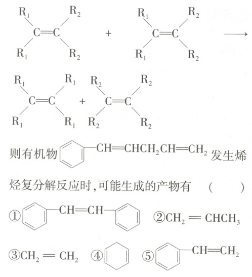 7.(2023 河南南阳中学月考 )烯烃里的碳碳双键在一定条件下可被拆开、重组,形成新分子,这种过程被命名为烯烃复分解反应(该过程可发生在不同烯烃分子间,也可发生在同种烯烃分子间)。反应原理如下: