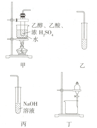 C.装置丙中采用$ NaOH$溶液除去产物中混有的乙酸和乙醇