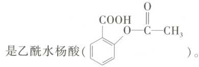 是乙酰水杨酸()。乙酰水杨酸中有羧基,具有羧酸的性质;同时还有酯基,在酸性或碱性条件下能发生水解。可以通过实验检验乙酰水杨酸中的羧基和酯基。