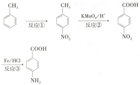 )是一种用途广泛的化工产品和医药中间体,通常以甲苯为原料进行合成。对氨基苯甲酸的一种合成路线如下(已知:烷基为苯环上邻、对位定位取代基,羧基为苯环上间位定位取代基)。下列说法错误的是 (
